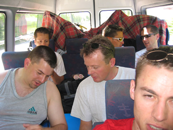 Los geht's! Pünktlich verlässt der Bus - ein Tränenmeer der Daheimgebliebenen hinter sich