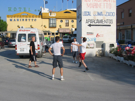Jede Fahrpause wird zum lockeren Fussballspiel genutzt! Jaussi, Jüre, Märcu und Beat (v.l.)