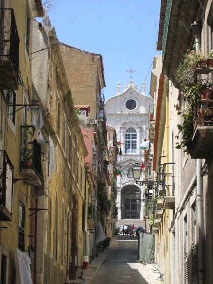 Vorbei an einer der engen, für Lissabon typischen Gassen...