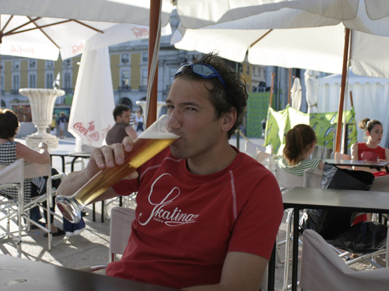 Schroti bei einem Bierchen in Ehren auf dem Praça do Comercio.