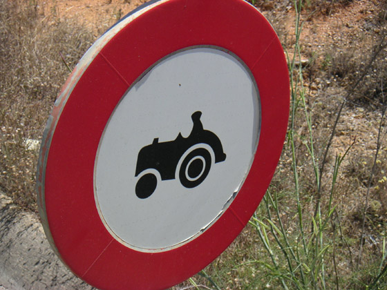 Ein viel gesehenes Schild, das uns doch zu denken gab! Traktor-Verbot!